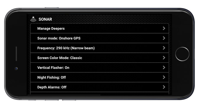 L’App Deeper riconoscerà automaticamente quale modello di Deeeper è connesso allo smartphone/tablet e mostrerà soltanto le imostazioni disponibili si quel tipo di dispositivo.