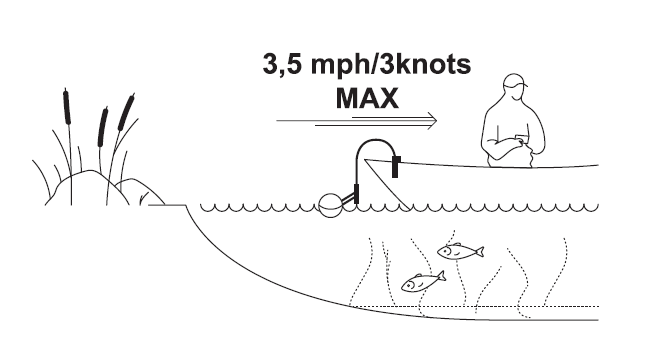 Kai Deeper sonar yra saugiau pritvirtintas prie jūsų valties ar baidarės pradėkite plaukti, sonaras skanuos dugną ir kartu kurs batimetrinį žemėlapį. Naudokite valties rėžimą Deeper programėlėje (nustatymai> sonaro rėžimas> valties rėžimas), jame matysite padalintą vaizdą – sonaro skanavimą ir tuo pačiu metu piešiamą batimetrinį žemėlapį. Rekomenduojamas plaukimo greitis iki 5 km/h (2.7 mazgų).