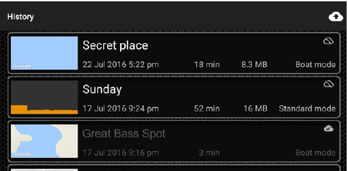 Überprüfen Sie auch, ob Sie die Cloud-Symbole in Ihrem Verlaufsbildschirm sehen können. Wenn Ihre Sitzungen nur den Umriss einer Cloud enthalten, bedeutet dies, dass sie noch nicht synchronisiert wurden. Um nicht synchronisierte Sitzungen sofort hochzuladen, klicken Sie einfach auf das Symbol oben rechts auf dem Bildschirm. (eine Wolke mit einem Aufwärtspfeil).