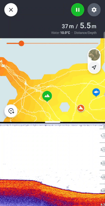 Przycisk ten znajduje się w dolnej części interfejsu mapy. Kliknięcie go spowoduje wycentrowanie mapy na Deeper Quest i ciągłe śledzenie jego pozycji w czasie rzeczywistym.Naciśnij przycisk „Zapisz punkt”