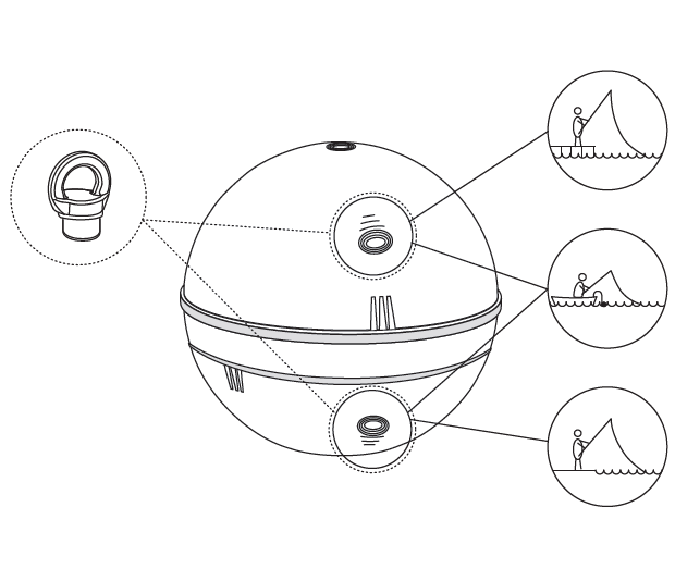 ⓘ付属のアタッチメントボルトは1本だけ使用してください。箱に入っているもう一つのボルトは予備です。 また、正しい取り付けポイントを使用してください。 間違った取り付け位置を使用すると、装置が水中で傾くため、接続性とソナーの測定値の精度に影響を与えます。