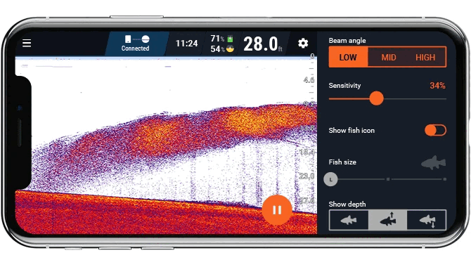 Kąt wiązki — przełączaj się między kątami wiązki sonaru echosondy Deeper. To ustawienie nie jest dostępne dla Deeper START