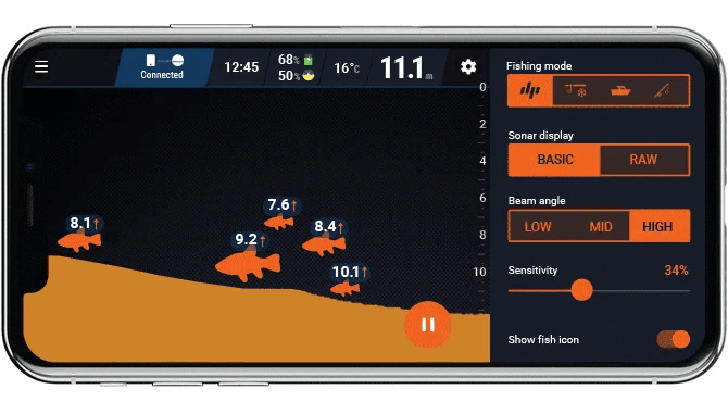 Pokaż ikony ryb – włącz/wyłącz specjalne algorytmy, interpretujące ryby i oznaczające je symbolami ryb na ekranie.