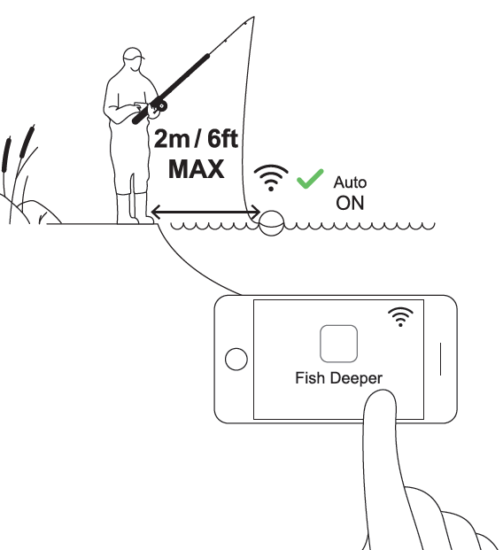 When you cast and reel in your Deeper sonar, keep your smartphone/tablet in a position where it can easily pick up the signal from your sonar. If your smartphone / tablet is on the ground or in your pocket, the connection may be unstable. We recommend using the Deeper Smartphone Mount for rods.