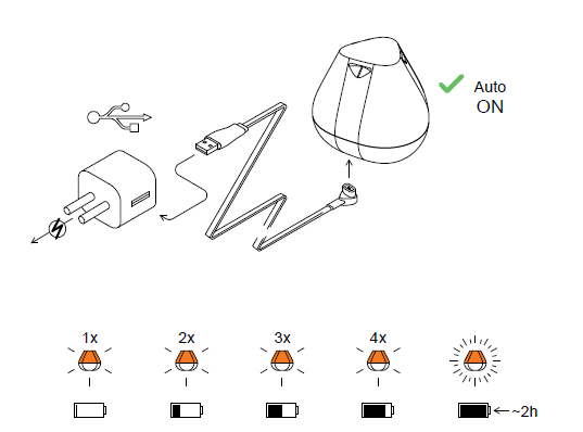 If the light blinks rapidly without stopping there is a problem with charging. In this case, please follow these 2 steps.