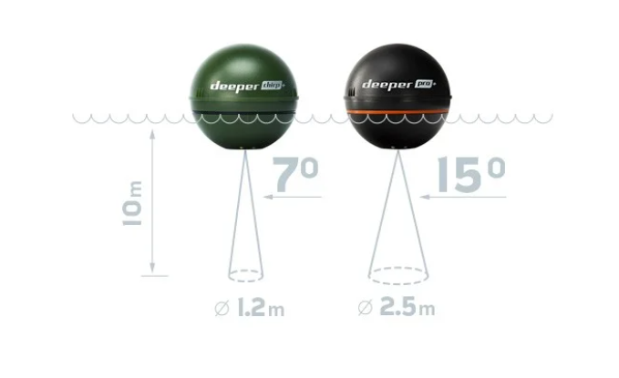 Les appareils Deeper Sonar analysent sous forme de cône. La surface du fond couverte par le faisceau de sonar augmente en fonction de la profondeur de la zone de pêche ainsi que de l'angle du faisceau que vous utilisez.