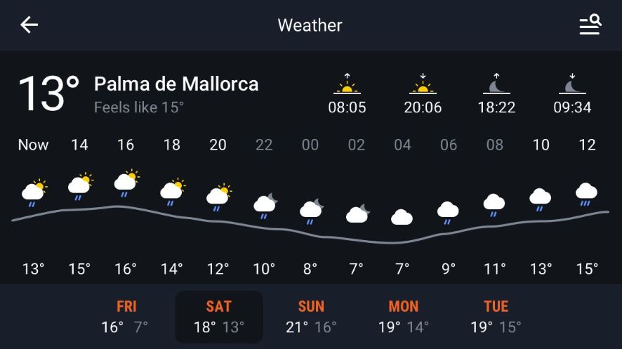 Les prévisions météorologiques sont divisées en segments d’une heure et vous pouvez afficher les prévisions météorologiques à 5 jours. Les informations météorologiques sont mises à jour toutes les 2 heures.