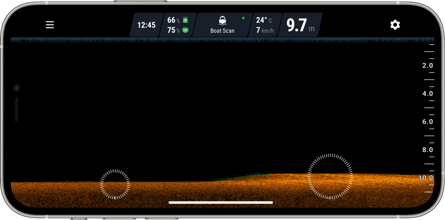 Les relevés sonar (affichage) des modèles Deeper PRO et CHIRP fournissent des informations cruciales sur le plan d'eau, telles que la localisation des poissons, leur taille approximative, la dureté du fond, les herbes et leur densité, ainsi que la structure sous-marine.