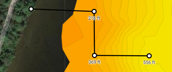 With Fish Deeper Web, you can easily calculate distance to any selected spot on the map. If you are using Fish Deeper Web on a GPS-enabled device, you can calculate the casting distance from your location on the shore to the selected spot.